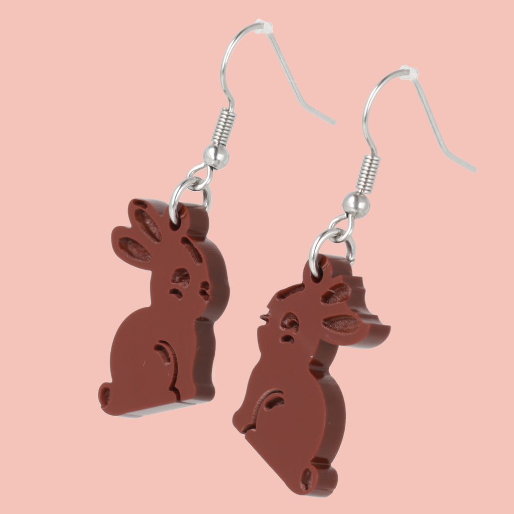 Indulge your sense of style with these Chocolate Bunny Earrings! These playful accessories feature charming charms in the shape of chocolate bunnies with a bite taken out of one ear, adding a touch of fun to any outfit. The stainless steel earwires provide durability and comfort, making them perfect for everyday wear.