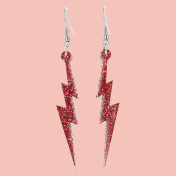 Red Glitter Lightning Bolt Earrings