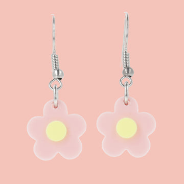 Bring a burst of playful springtime magic to your ears with the Blooming Botanicals Flower Earrings. These charming pink acrylic flowers, accented by sunny yellow centres, dance happily from sturdy stainless steel earwires. Perfect for adding a cheeky splash of colour and a floral wink to any outfit!