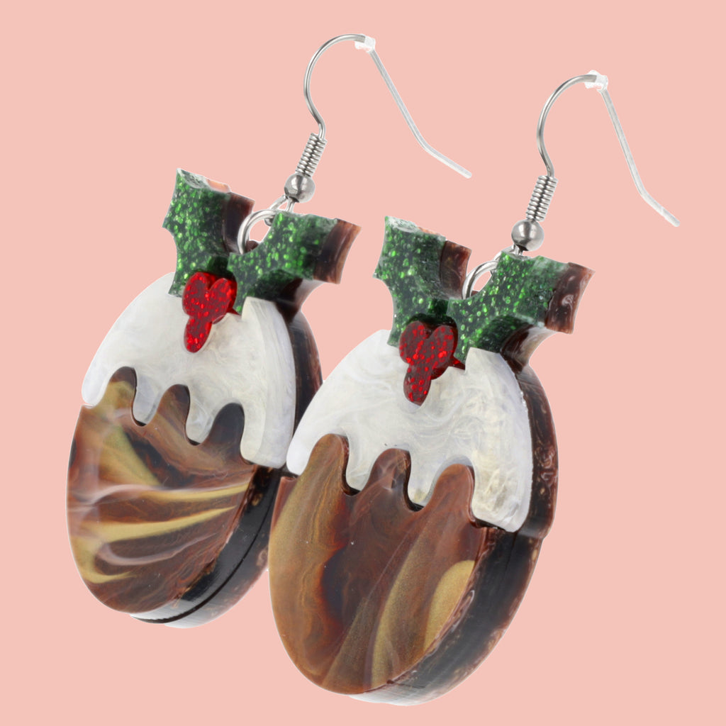 Show your festive spirit with these fun and quirky Christmas Pudding Earrings! These lightweight, acrylic earrings come equipped with stainless steel earwires, and are handmade right in Manchester! Celebrate the holidays, and let your accessories do the talking!