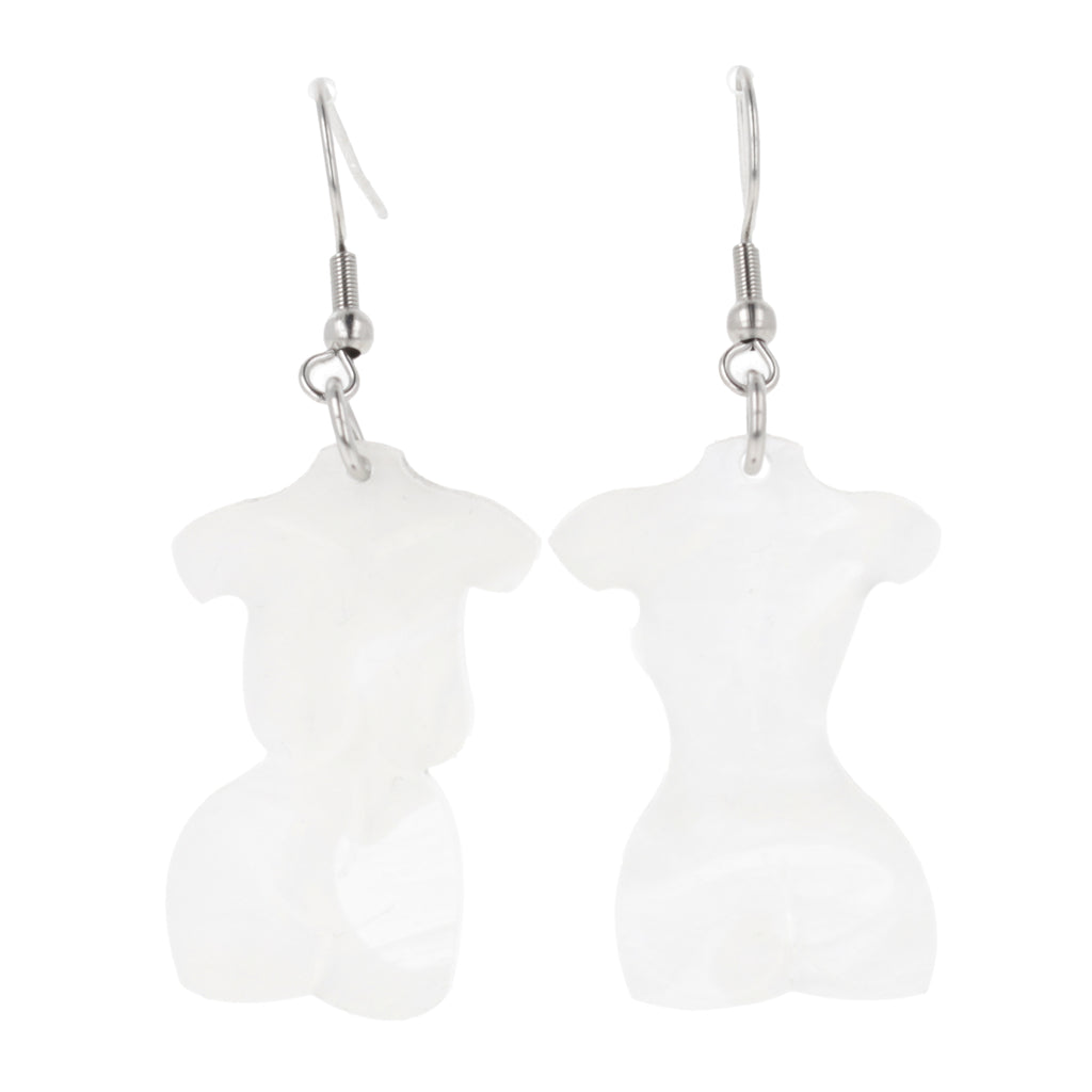 Celebrate your bold side with the Birthday Suit Earrings in Almond! These playful earrings feature marbled acrylic charms shaped like naked bodies, hanging from sleek stainless steel earwires. Perfect for adding a cheeky and unique touch to any outfit.