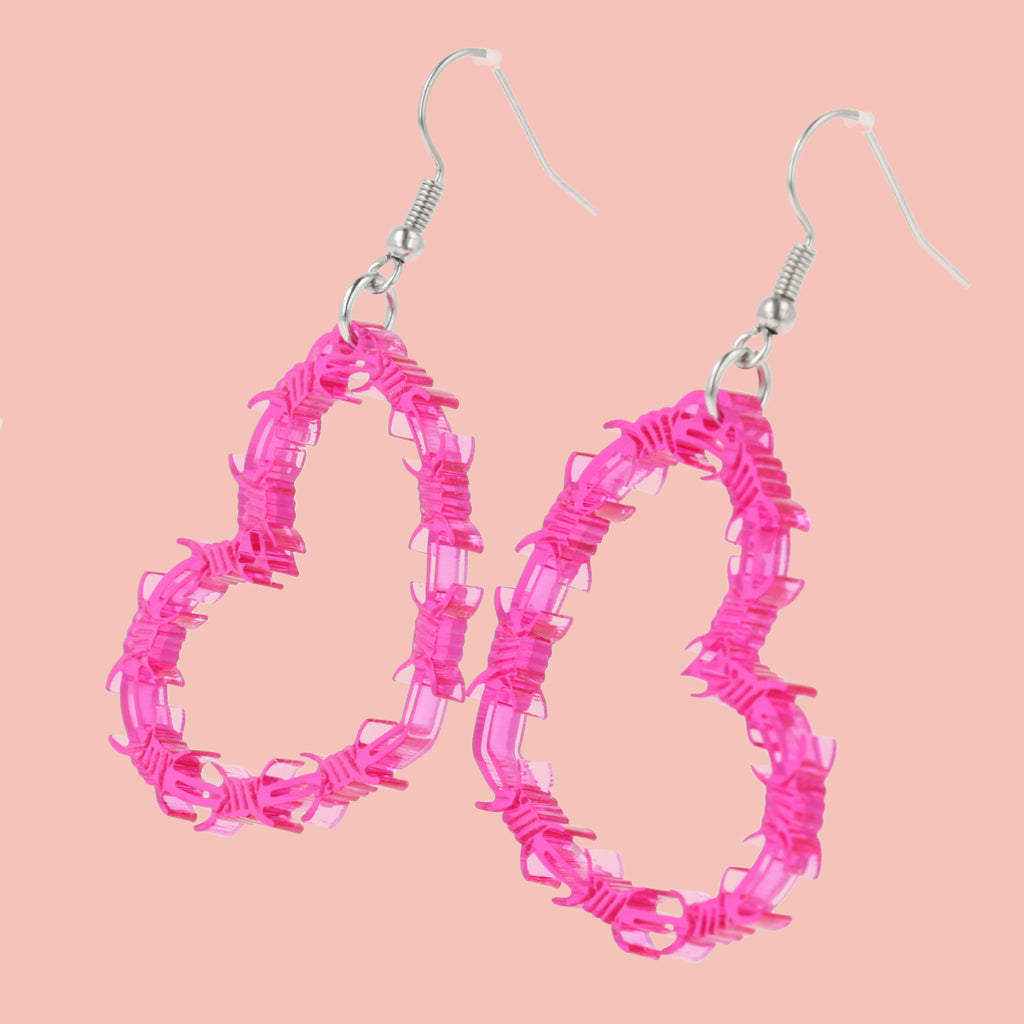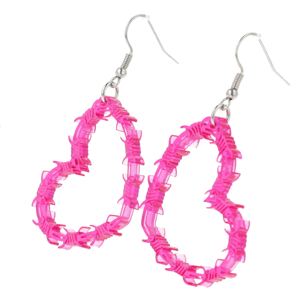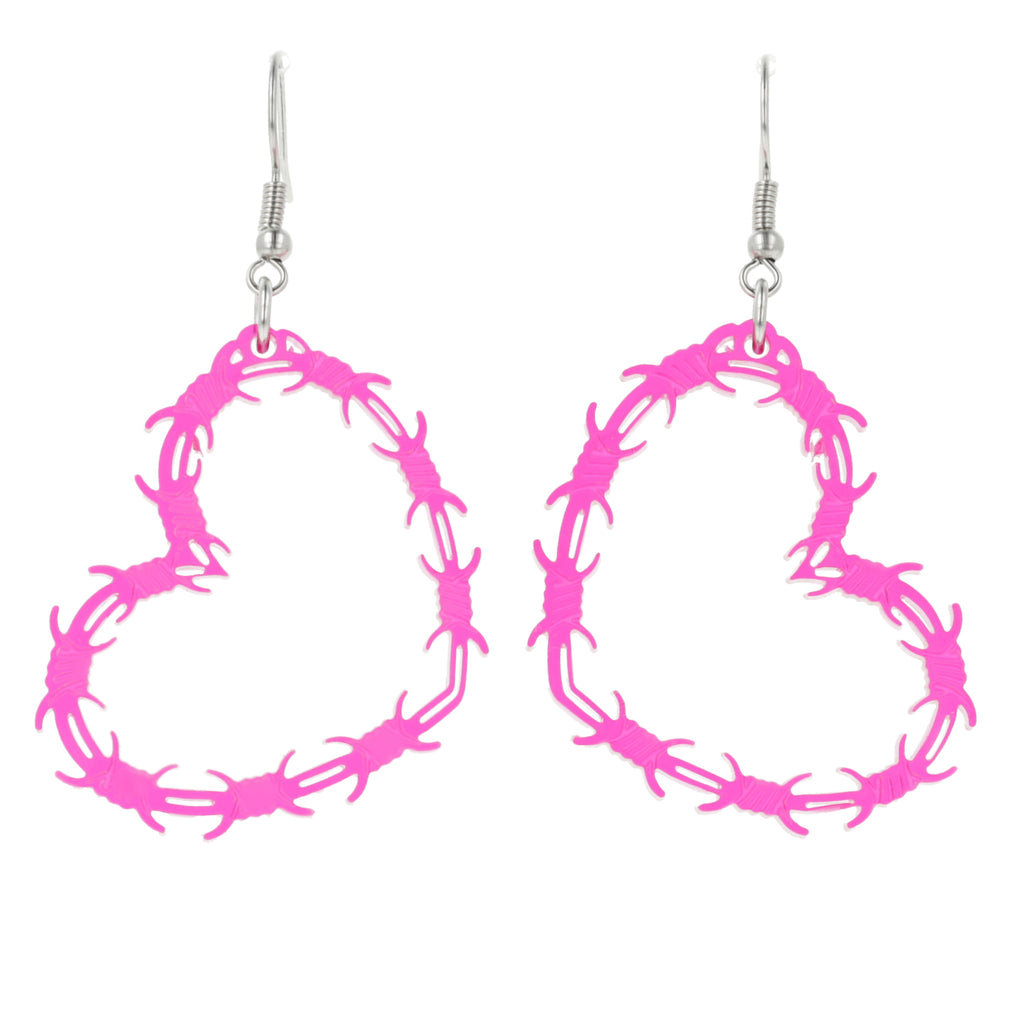 Pink Barbed Wire Heart Earrings