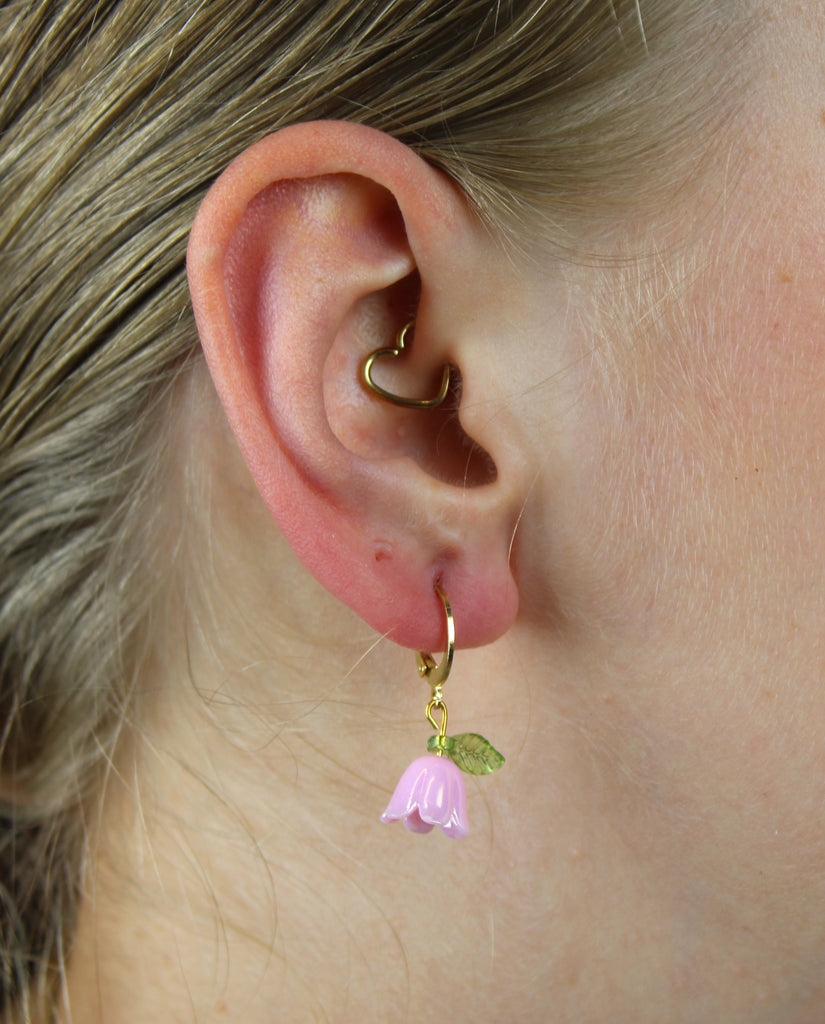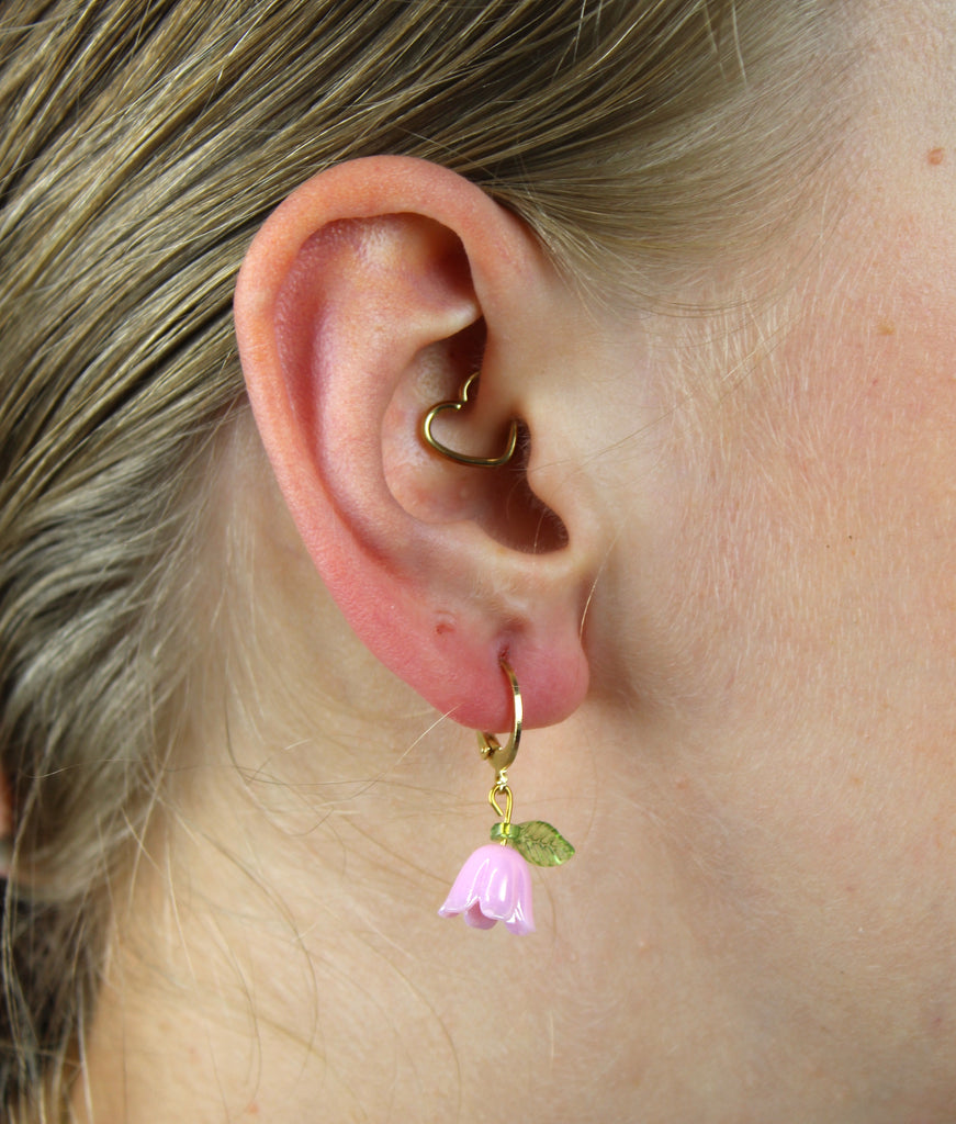 Add an elegant touch to your look with these Pink Bell Orchid Huggie Hoop Earrings! These gold-plated huggie hoops feature darling pink bell orchid flower charms, adding a playful and unique twist to any outfit.