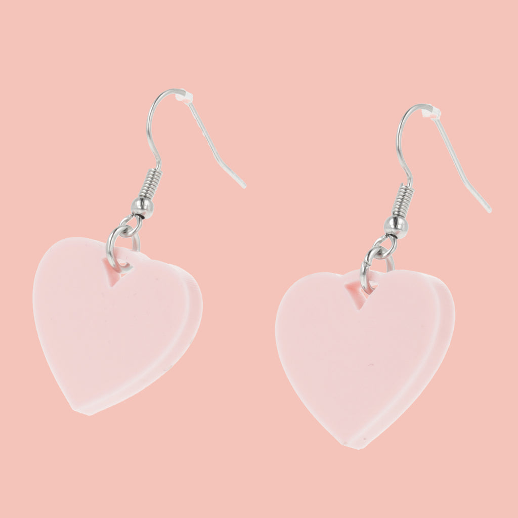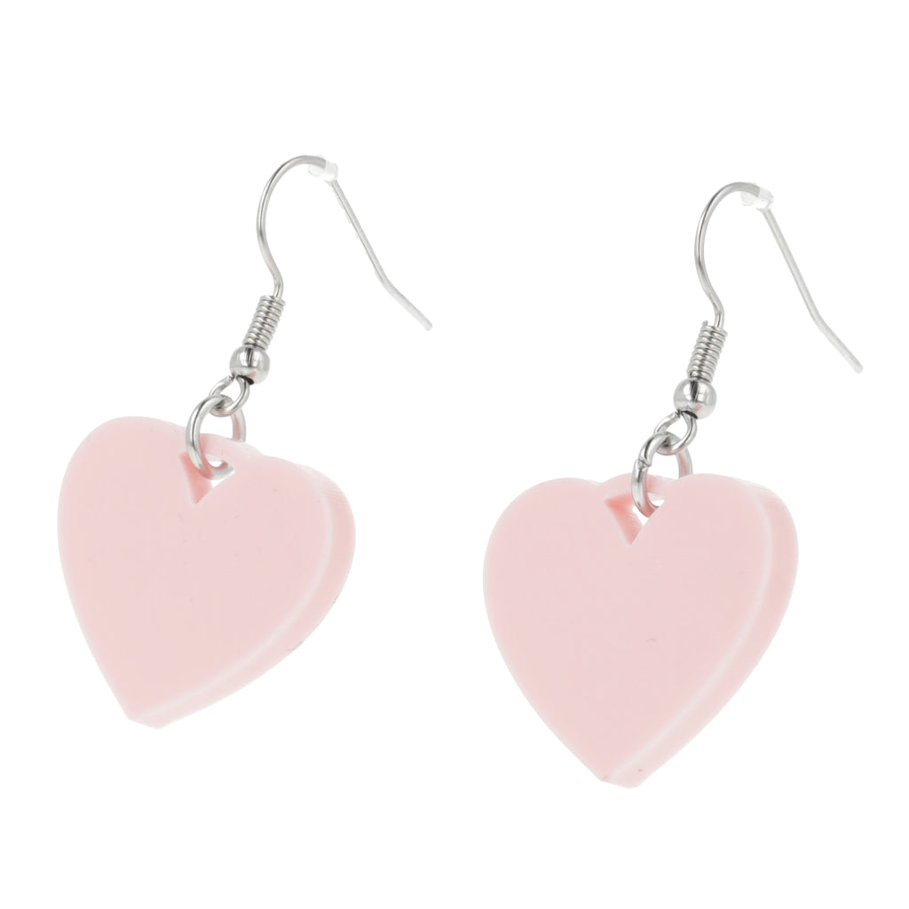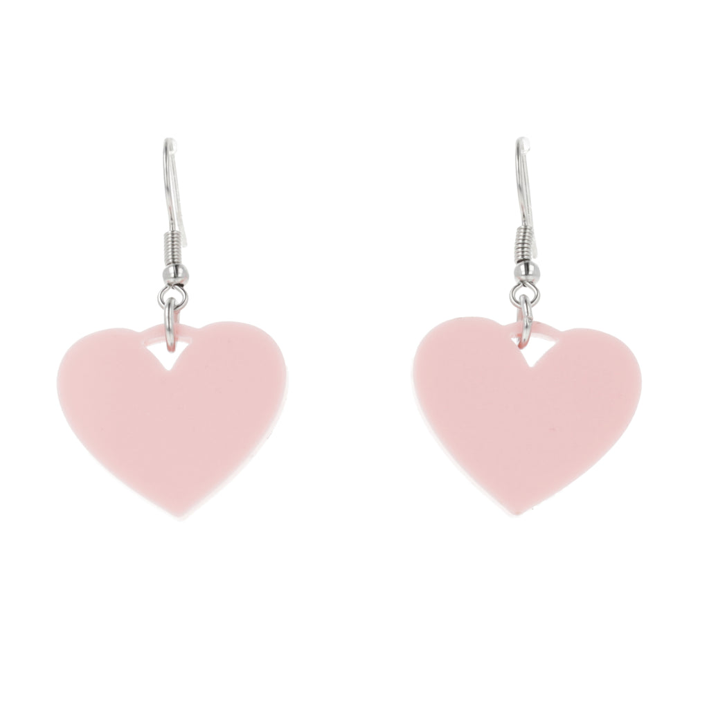 Add a playful pop of pink to your look with these mini drop earrings featuring acrylic heart charms on stainless steel earwires. Lightweight and sweet, they bring a fun and flirty vibe to any outfit.