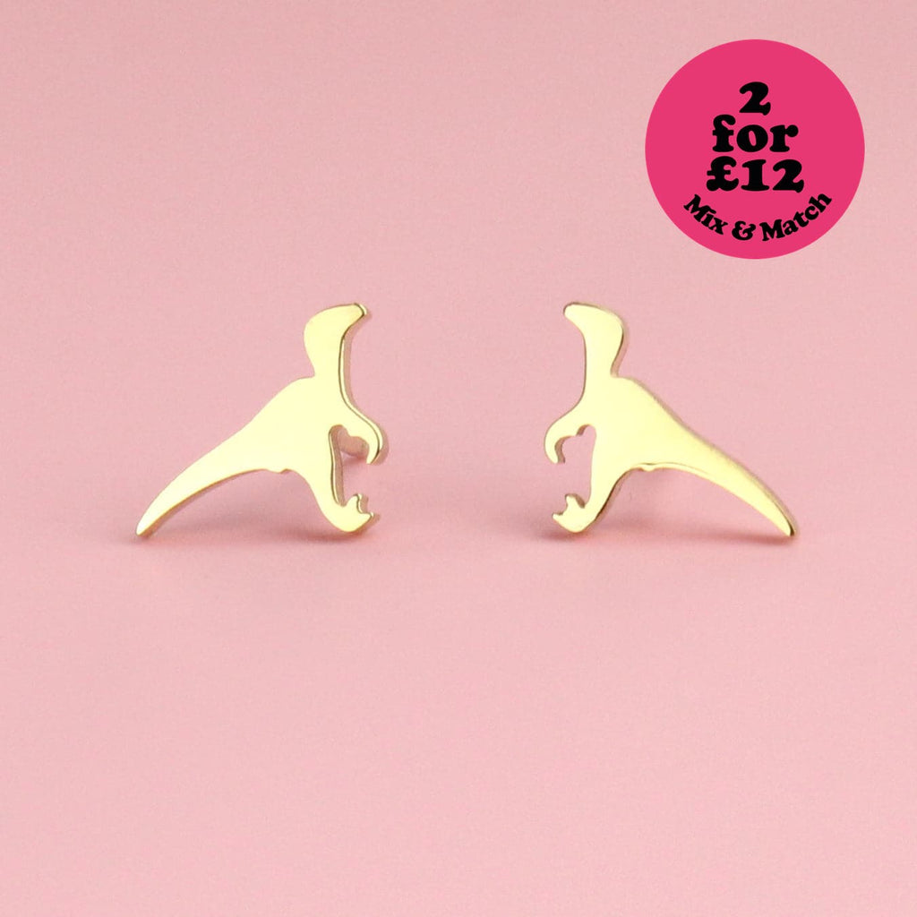 Mini Velociraptor Stud Earrings (Gold Plated)