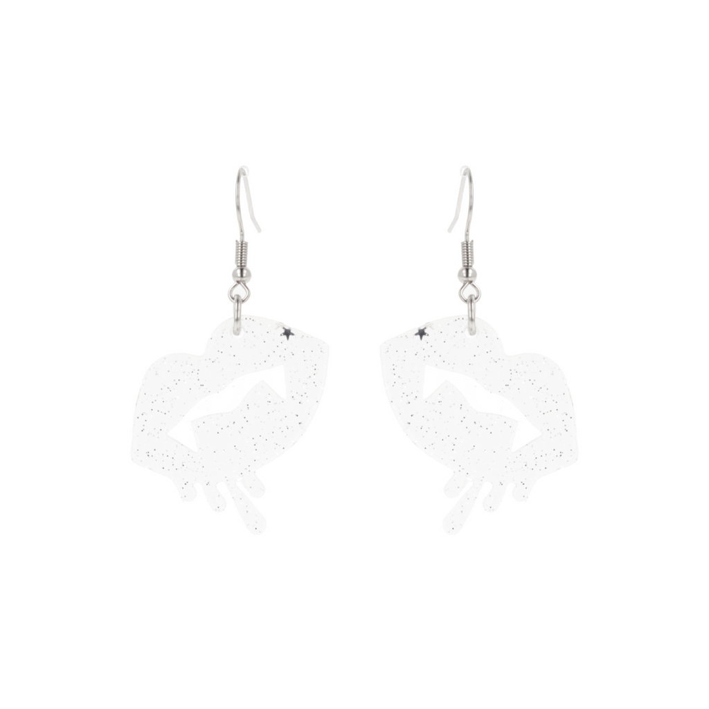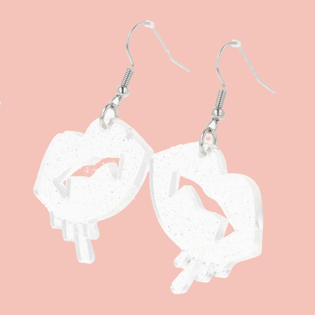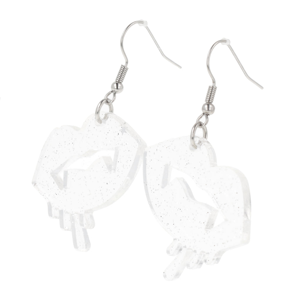 Break the shackles of the mundane and gain the skin of a killer vampire with these thrilling earrings! Boldly adorn yourself with glitter acrylic lip charms featuring vampire fangs on stainless steel earwires - a daring combination sure to turn heads.
