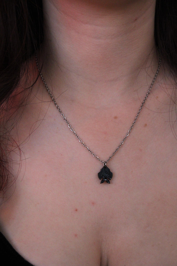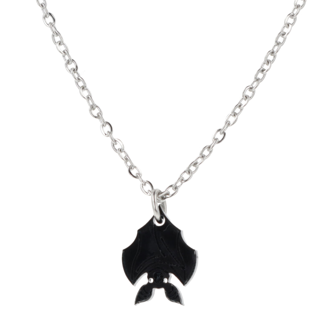 This playful Bat Necklace features a charming acrylic bat hanging upside down from a sleek stainless steel chain. Perfect for adding a fun, quirky touch to any outfit, it’s lightweight and durable—ideal for those who love a little whimsy in their accessories.