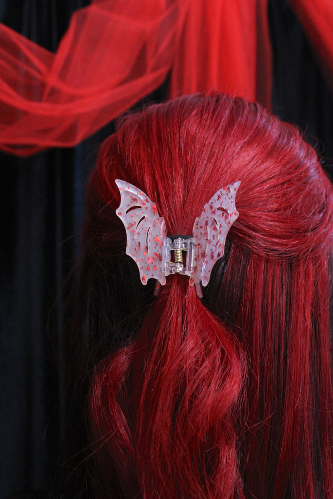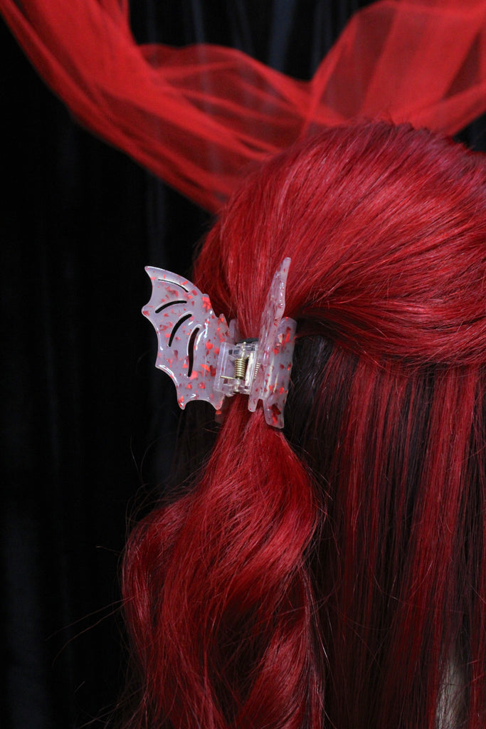Add a dash of spooky charm to your style with the Bat To The Bone Claw Clip with a blood splatter pattern. Featuring intricate cut-out wing details, this playful accessory perfectly grips your hair while showing off your love for all things mysterious and bold. Easy to wear and eye-catching, it's ideal for adding a fun, gothic twist to any look.
