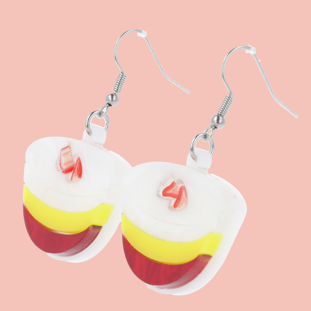 These Trifle Earrings are a deliciously decadent way to add a festive touch to your look. Crafted from acrylic these trifle charms have stainless steel ear wires, and made with love in Manchester, they're the perfect treat for your ears!