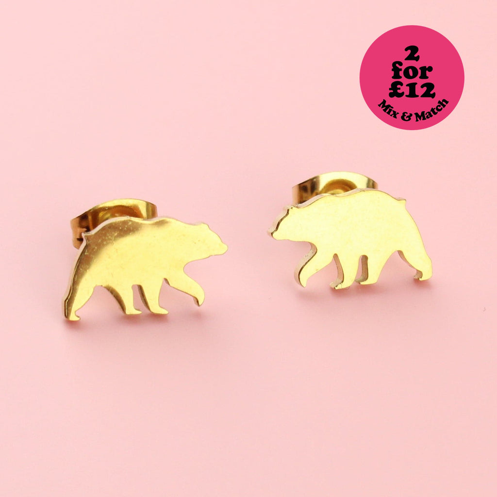 Big Stretch Cat Stud Earrings (Gold Plated)