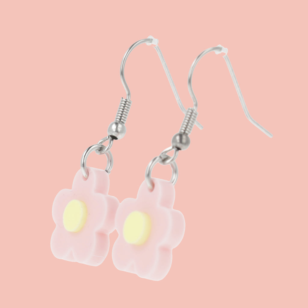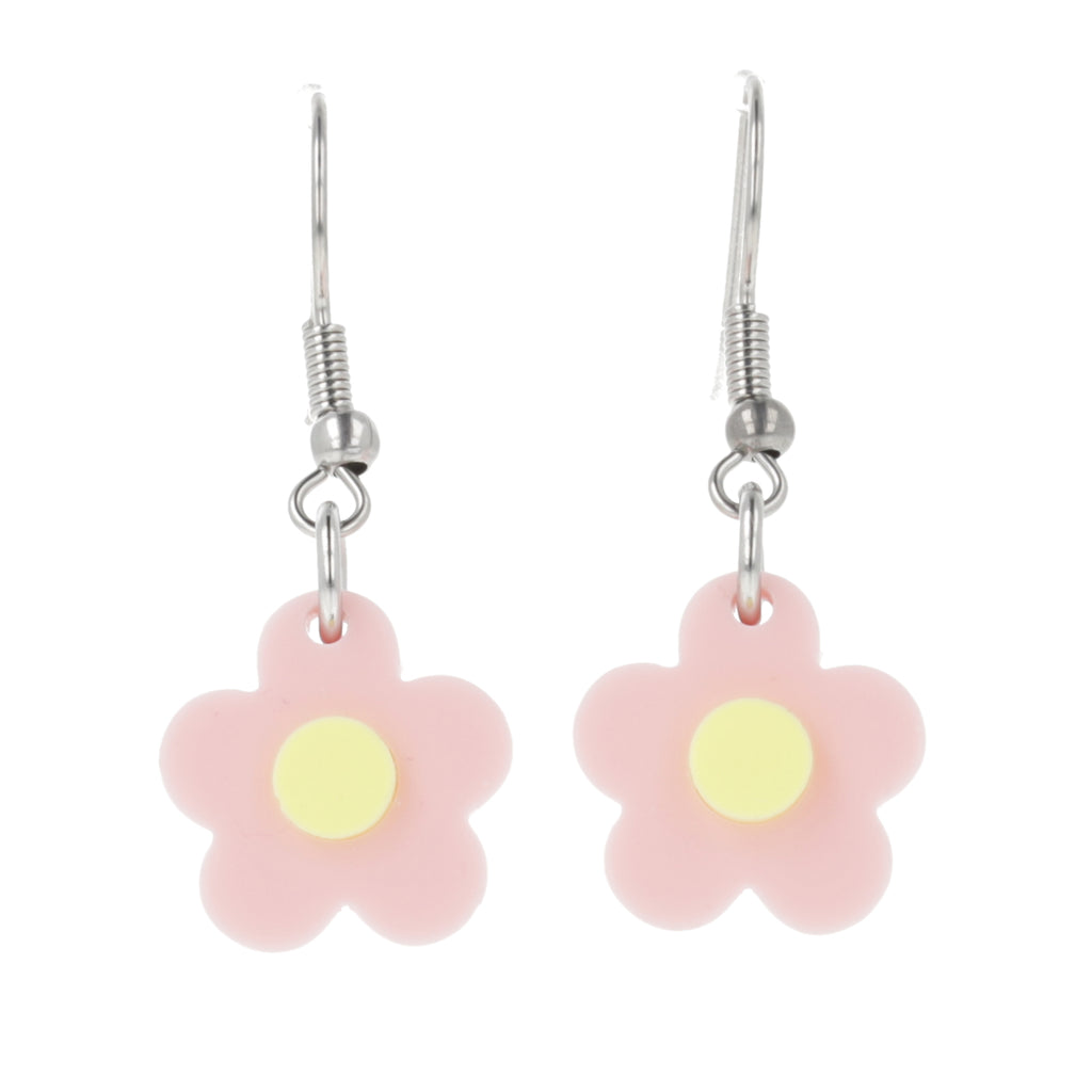 Bring a burst of playful springtime magic to your ears with the Blooming Botanicals Flower Earrings. These charming pink acrylic flowers, accented by sunny yellow centres, dance happily from sturdy stainless steel earwires. Perfect for adding a cheeky splash of colour and a floral wink to any outfit!