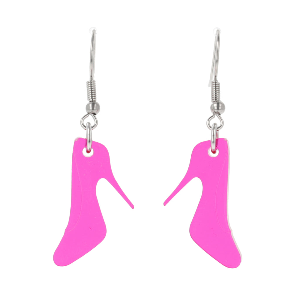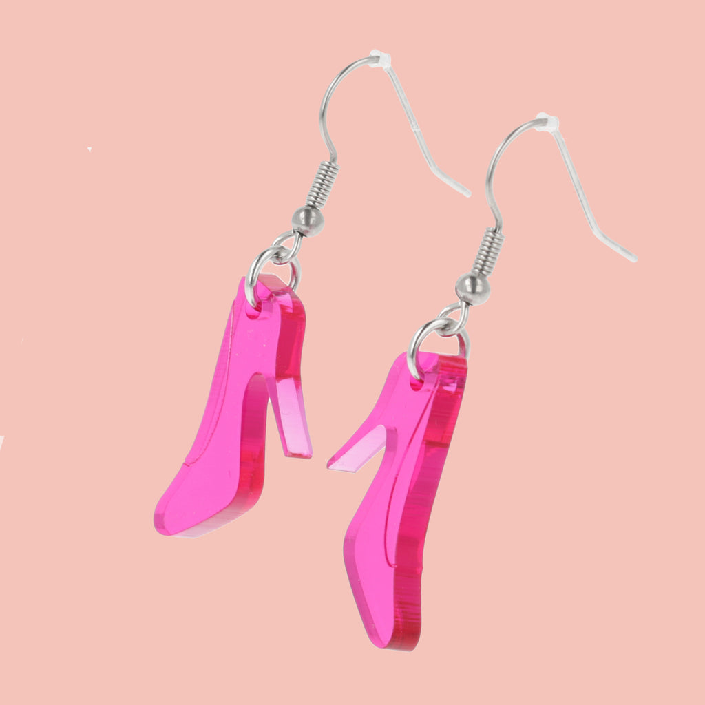 Our High Heel Shoe Earrings are the perfect accessory for any fashionista. Crafted with durable Transparent Pink Perspex and stainless steel ear wires, these earrings will last you for years to come.