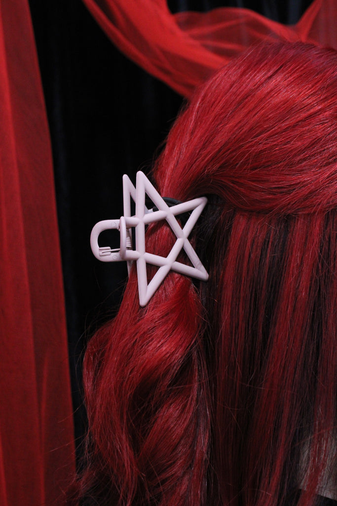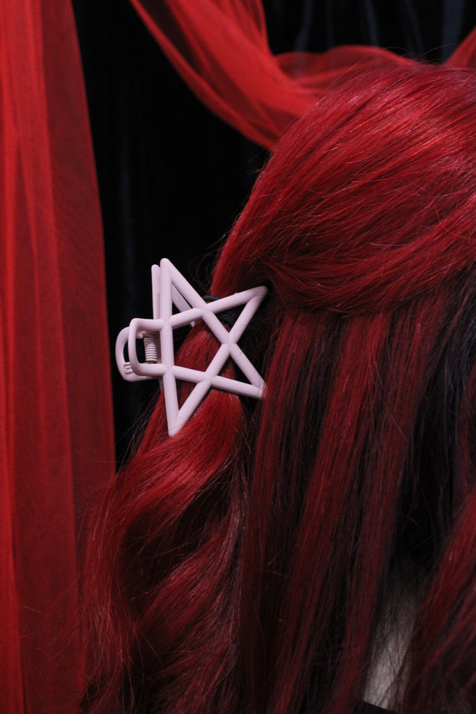 Add a touch of magical charm to your look with this playful dusty rose pentagram hair clip. Perfect for keeping your hair stylishly in place while showing off your unique vibe!
